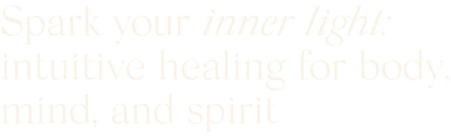 WE UNDERSTAND THAT YOUR JOURNEY TO WELLNESS IS AS UNIQUE AS YOU ARE. THROUGH OUR INTUITIVE, INTEGRATIVE APPROACH, WE CREATE PERSONALIZED EXPERIENCES DESIGNED TO MEET YOU EXACTLY WHERE YOU ARE. LET US GUIDE YOU TOWARD THE HEALING THAT'S ALREADY WITHIN YOU.